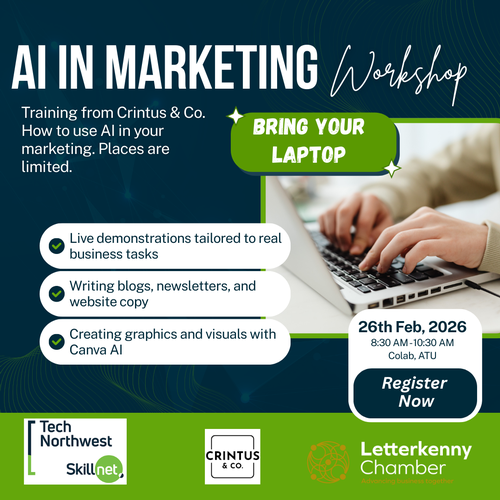 Led by Crintus & Co, a Donegal-based digital agency specialising in AI, automation, and digital strategy for SMEs, these practical sessions are designed for business owners who want to work smarter and stay ahead.